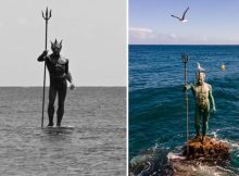More Info: mymodernmet Have you ever seen a statue appear and disappear with the tide? On the shores of Gran Canaria, Spain, there’s a towering sea god who